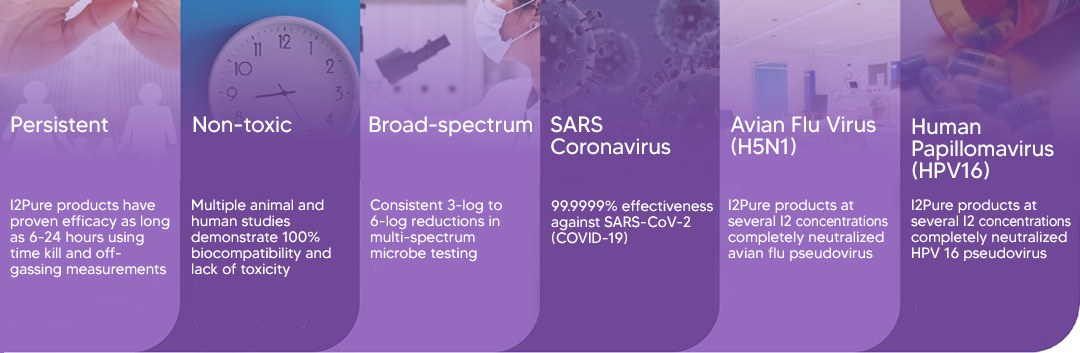 I2Pure is a healthcare technology company dedicated to advancing the world of health and biosafety by preventing infections and disease through its patented, non-toxic molecular iodine platform.
